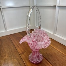 Vintage Fenton 1964 Rose Mist Vase Murrhina Art Glass Basket Clear Bamboo Handle