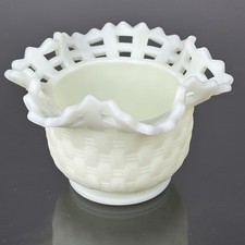 Vintage Fenton Art Glass Hobnail Milk Glass Basket Bowl Ruffled Edge 10 x 11