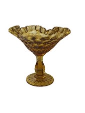 Vintage Fenton Art Glass Amber Compote Pedestal Candy Dish Ruffled 7"