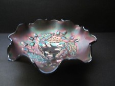 Vtg Fenton Iris Carnival Glass Amethyst 5 Cornered Compote Vibrant Color