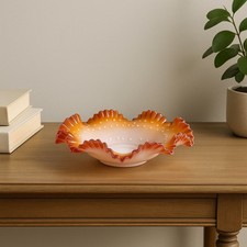 Fenton Peach Crest Double Crimped Bowl #7224-PC 10" Vintage Art Glass