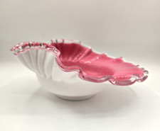 Vintage Fenton Peach Crest Shell Bowl Ruffle Edge Deep Pink