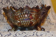 Fenton Blue Grape & Cable Carnival Glass Large 3 Footing Fruit Bowl 9.5" Wide
