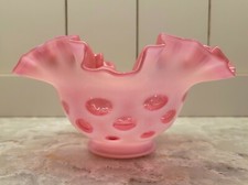 Fenton Brides Bowl Glass Pink/Cranberry Ruffled Crimped Scalloped Edges 10.5”W