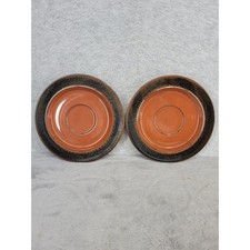 Vintage Mid Century Modern Terracotta Speckled Rim Stoneware Saucers Set of 2