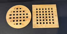 Vintage Wood Trivets Kamenstein Mid Century Modern Square Round Lattice Trivet