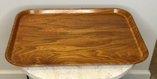Mid Century Small Pyrex Vanity Serving Tray Faux Wood Tray Rounded Edges 12x8"