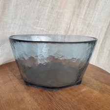 Blue Hammered Glass Serving Bowl Decor 7 Inch Mid Century Octagonal Base