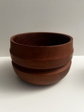 Vtg Mid Century Modern Wavy Grain Two Tone Carved Teak Turned Wooden Bowl