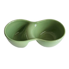 Ooma Bowl by Thomas Both | Avocado Green Ceramic Double Bowl Mid-Century Modern