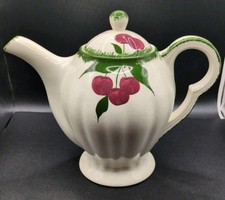 Vtg Hand Painted Mid Century Modern Teapot With Cherries And Green Leaves Read