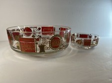 Jeanette Glass Chips And Dip Set Vintage Gold Red Recipes On Glass Mid Century