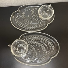 Hazel Atlas Homestead Snack Set 2 Trays 2 Cups Clear Glass Perfect Vintage