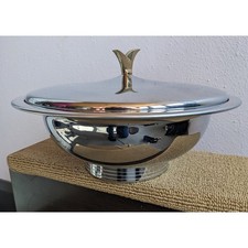 KROMEX Covered Deep DISH CASSEROLE Mid Century Modern Large SILVER Chrome VTG