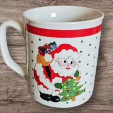 Vintage Christmas holiday Santa toy bag 8oz coffee mug