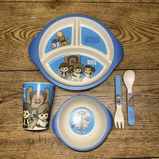 Disney Star Wars Plate Bowl Cup Fork Spoon Set 5pc Best Buds Bamboo Kids EUC