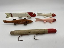 Lot Of 5 Ice fishing Spearfishing Decoys Antique Hand carved painted Lures Plug