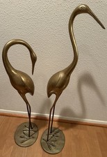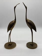 Vintage Solid Brass Crane Heron Bird Figurine 12” Mid Century Modern Decor Pair