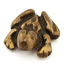 MCM Solid Brass Frog Paperweight - Anatomically Correct Male Toad Figurine VTG
