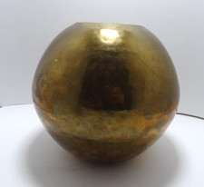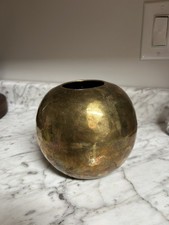 Vintage Hammered Brass Metal Ball Vase Planter Mid Century Modern