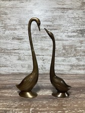 Vintage Brass Herons Swans Animal Sculpture Mid Century Home Decor 21” & 18”