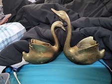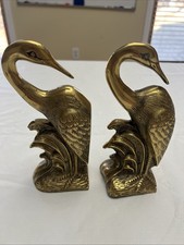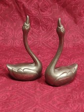 Vintage Solid Brass Swan Figurines Pair Mid Century Decor Book Ends MCM