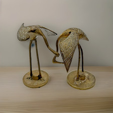 Vintage Brass Crane Bird Figurines – Pair of Mid-Century Decorative Statues