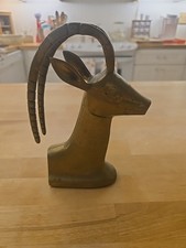 Vintage Brass Antelope Ibex Gazelle Bookend Mid-Century Modern Heavy