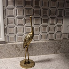 Vintage Mid-Century Modern Brass Crane Heron Statue Bird 12” Tall Korea