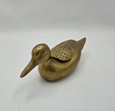 Vintage Mid Century Brass Duck Trinket Box with Lid Large 10"