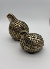 Two Vintage Brass Quail Partridge Bird Figurines Mid Century Modern Paperweight