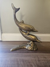 Vintage Brass Dolphin Statues Mid Century Modern MCM Decor Art Aquatic