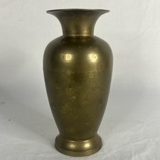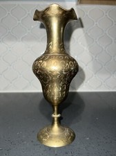 Vintage Antique Floral Indian Brass Vase Engraved 9”