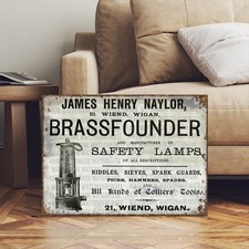 Vintage NCB Coal Board James Henry Naylor Miners Lamp Advertising Sign