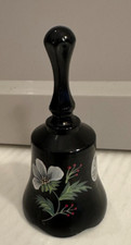 Vtg Fenton Art Glass Black Bell Hand Painted Christmas Flower Artist B Huggins