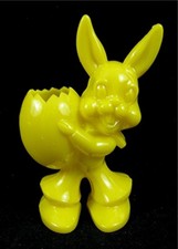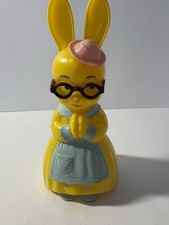Vintage Yellow Easter Bunny Rabbit Holding Egg Hard Plastic Toy Old Store Stock