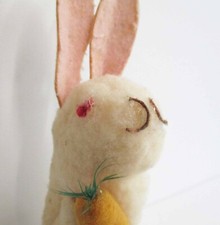 Vintage Easter Large Spun Cotton Bunny Toy Holds Carrot 6.25" Tall Japan 1930s