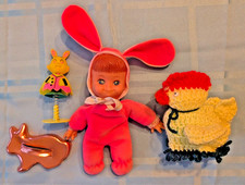 Vintage Easter Lot Pink Bean Bag Doll Bunny Copper Cutter Pop Toy Knit Chick
