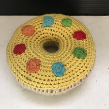 Vintage Handmade Yellow Crochet Donut Maraca Toy w/ Colorful Sprinkles 3.75"D