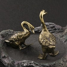 Antique Brass Goose Pair Figurine Tea Pet Home Office Decor Collectible