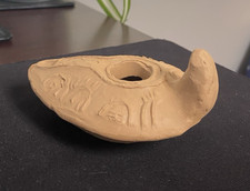 Vintage Biblical Antique REPLICA Herodian Terracotta Oil Lamp Clay 4 x 3"