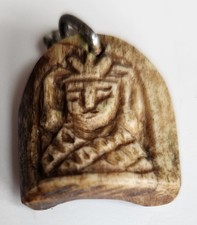 19th century CARVED HORN PENDANT w/ MAN'S FACE antique