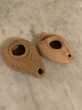 SET of 2 Vintage Biblical Antique Replica Herodian Terracotta Oil Lamp Clay