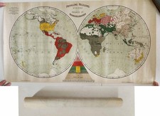 1894 antique WORLD RELIGIONS rolled linen MAP evangelization MISSIONARY 15x27