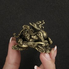Antique Brass Qilin Statue Mini Mythical Creature Sculpture Solid Brass Figurine
