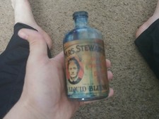 Vintage advertising glass bottle of Mrs. Stewart's Liquid Bluing laundry