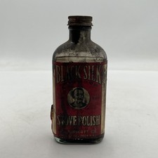 Vintage Black Silk Stove Polish Glass Bottle Empty See Pics Advertising W/ Lid