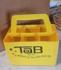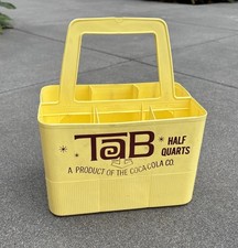 TAB Soda Bottle Yellow Plastic Carrier Carton 6 pk Half Quart 1970’s