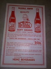 RARE 1940's Heinz Mr. Nibbs 6x9 advertising Coupon soda pop not coca cola