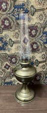 Antique Gold Banquet Column Oil Lamp W&W Kosmos Burner Glass & Brass Metal Base